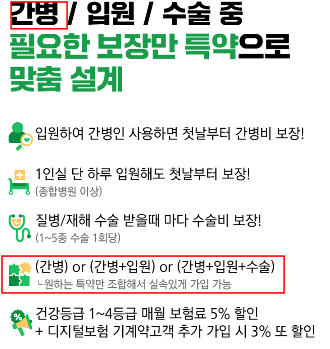 간병인 사용 보험은 세 가지 특약으로 구성됩니다.