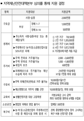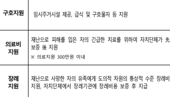 직접지원 항목은 주택 피해, 사망자 유족, 중상자, 생계 곤란자 등에 대한 현금성 지원이 이뤄집니다.