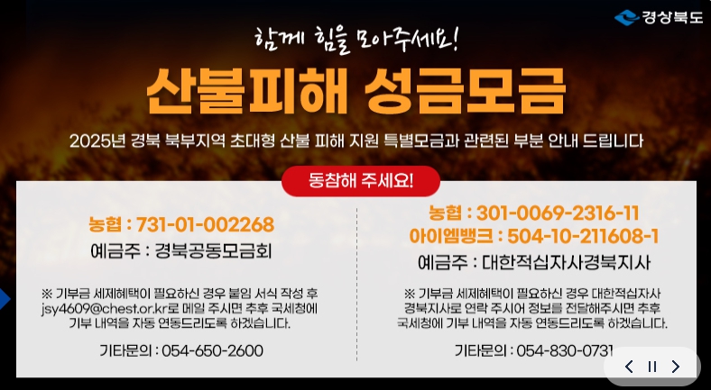 경북 지역 산불 피해를 입으신 모든 분들께 진심 어린 위로를 전합니다.