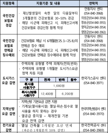 - 금융지원: 은행 대출금 상환 유예, 소액 긴급 생계비 융자
