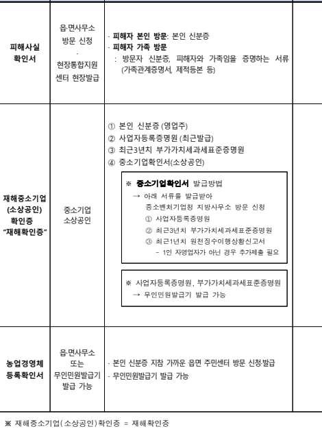 각종 지원을 받기 위해서는 ‘피해사실확인서’ 또는 ‘재해확인증’이 필수입니다.
