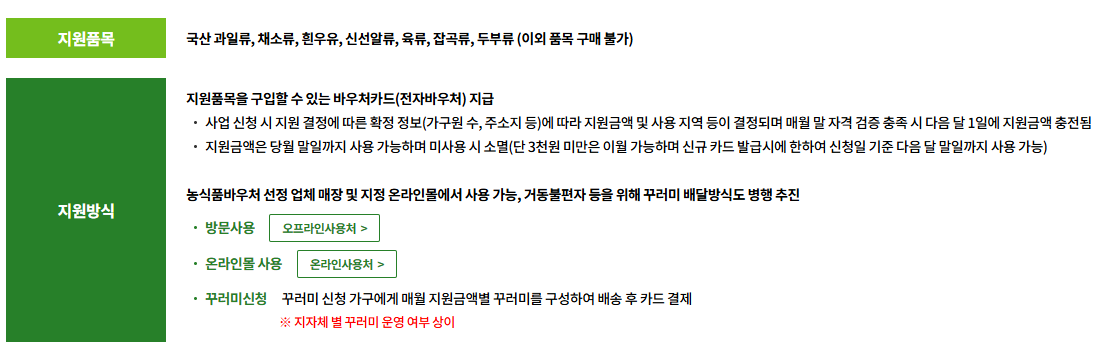 - 🖥️ 온라인: 농식품바우처 홈페이지 (www.fvoucher.or.kr)