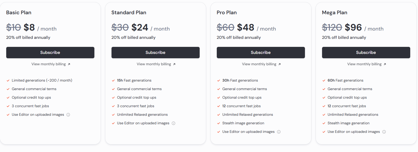 | Standard | 월 $30 | 월 1000장 이미지 생성, 빠른 처리 속도 |