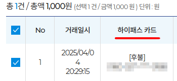 본인 이름으로 로그인을 하면 하이패스 후불카드를 확인할 수 있기 때문에 바로 결제가 가능합니다.