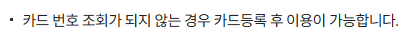 설명 문구 중 카드 번호 조회가 되지 않는 경우, 카드등록 후 이용 가능하다고 나와있습니다.