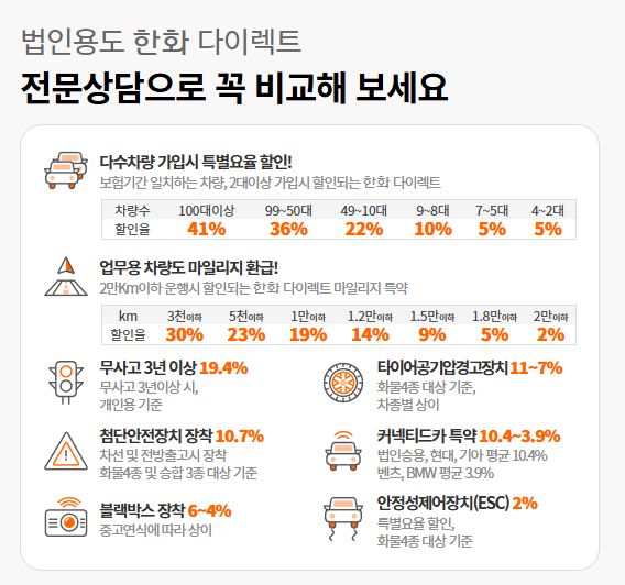 다수차량 가입시 특별요율 할인됩니다. 업무용 차량도 마일리지 환급되요!