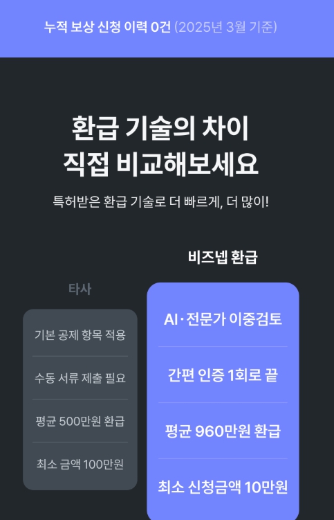 | 구분 | 일반 환급 | 비즈넵 환급 |