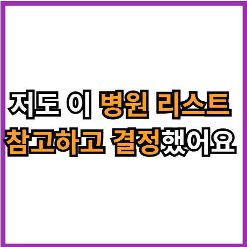 - 🔍 의료진 경력과 수술 건수를 확인하세요. 경력 많은 병원이 대체로 안정성 높습니다.