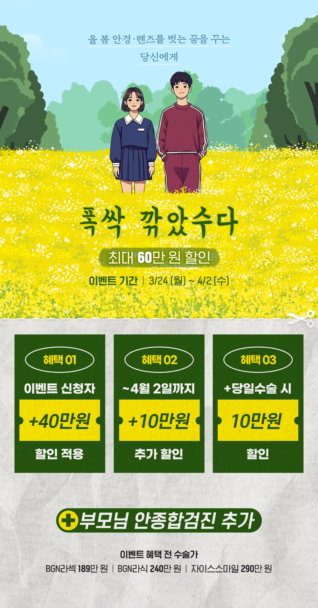 - ✔ 라식, 라섹, 스마일라식, 안내렌즈 등 모든 수술 라인업 보유