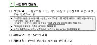 | 사업정리 컨설팅 | 2025년 1월 17일 ~ 예산 소진시 | - |