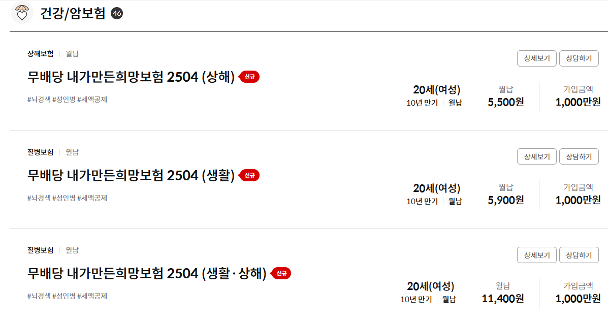 - 보험기간: 20년 또는 30년형 선택 가능