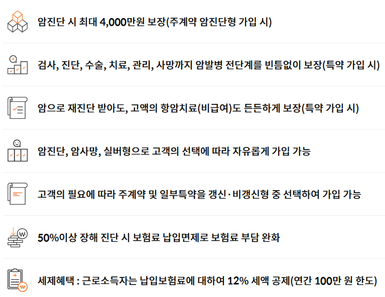 - 일반암 진단금: 최대 1,000만 원 지급