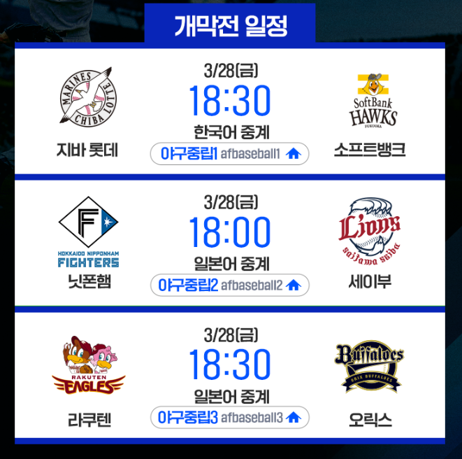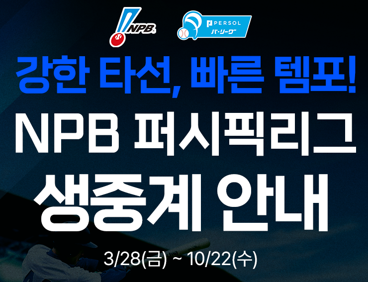 일본 프로야구 퍼시픽 리그가 드디어 개막했습니다! 2025년 시즌부터는 SOOPTV를 통해 전 경기 생중계가 이뤄지며, 정규리그부터 인터리그, 클라이맥스 시리즈(포스트시즌)까지 모두 무료로 시청