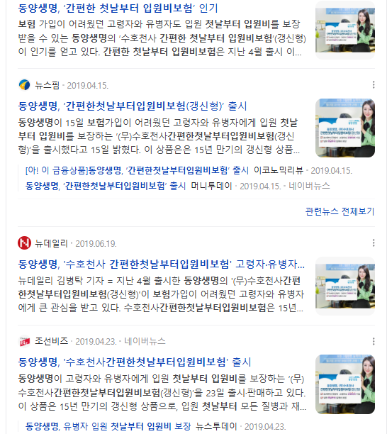 - 동양생명 – 간편한 첫날부터 입원비보험