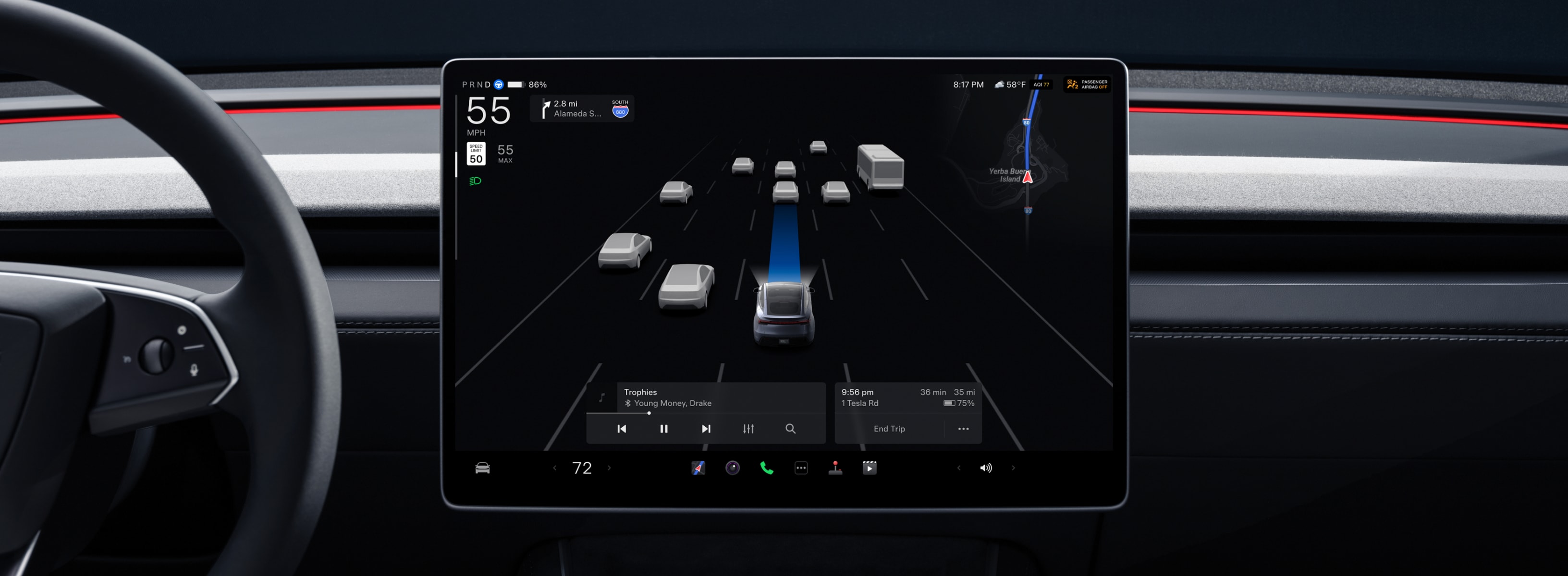 외관은 사이버트럭의 날렵한 라인을 닮아 한층 더 세련된 느낌을 주며, 후면부에는 일체형 간접 반사 테일램프가 처음 도입돼 테슬라 특유의 모던함을 강조합니다.