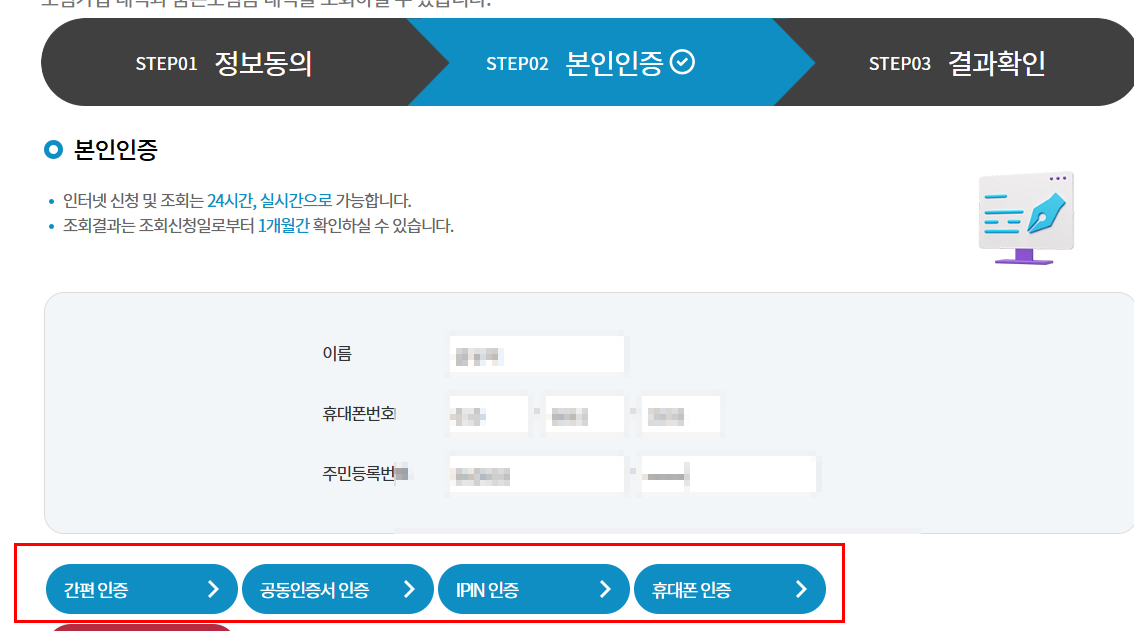 - 조회는 무료이며, 약 5분 내외로 완료 가능