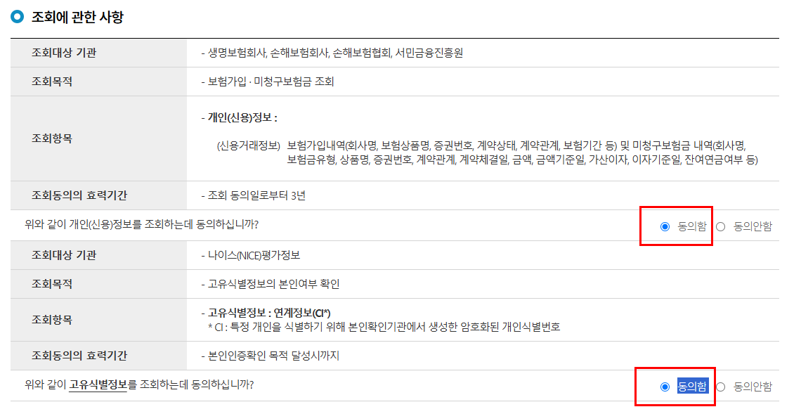 통합보험 조회 시 주의사항