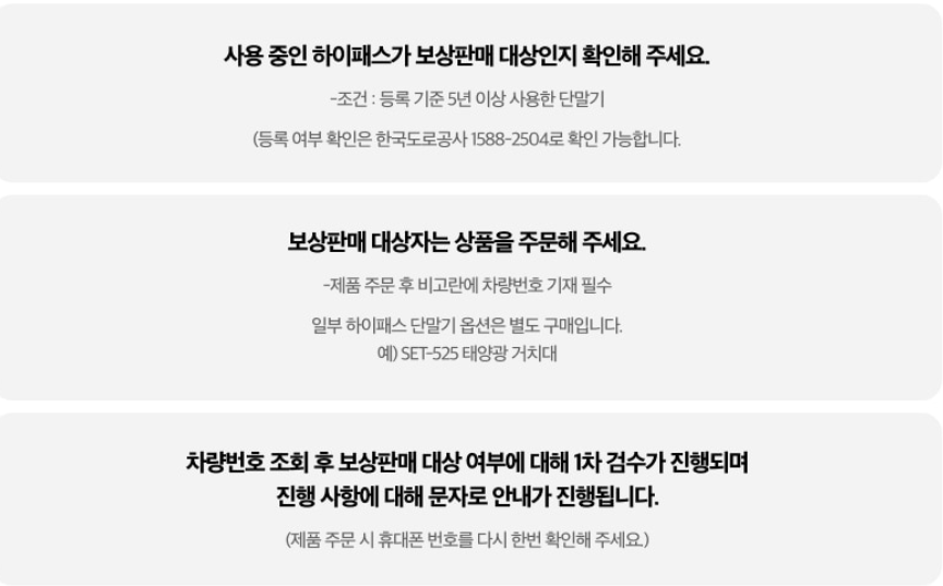 보상판매는 기존 단말기를 반납하면 신형 단말기를 할인된 가격에 구매할 수 있는 제도인데요. 특히 도로공사 및 하이패스 제조사들이 매년 한정 기간 동안 진행하는 경우가 많아 시기를 잘 맞추는 것이 중요합니다.
