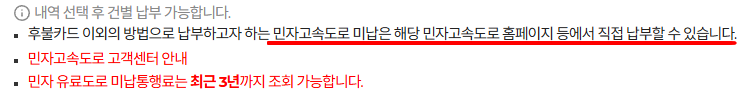 나라 것이 아니니까 당연히 결제도 하이패스 미납요금에서는 안되고 해당 민자고속도로 홈페이지에서 결제해야 합니다.