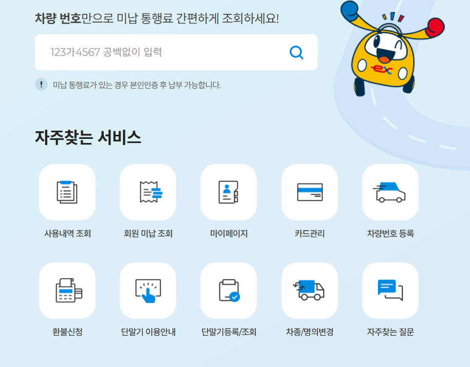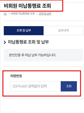 - 고속도로 통행료 홈페이지 접속 후 → 차량번호 입력 → 미납 내역 조회