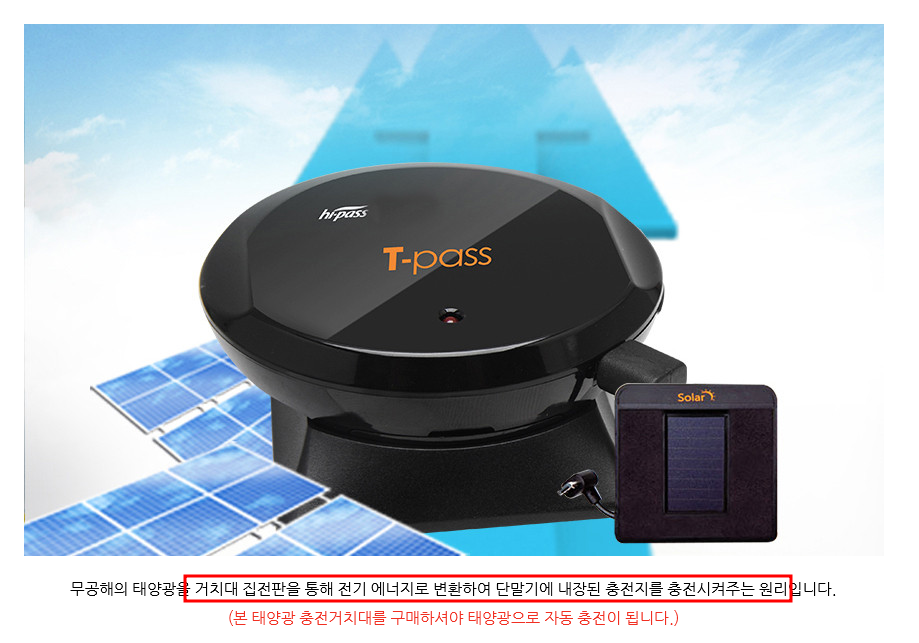 특히 태양광 충전 거치대(별매)를 함께 사용하면 완전 무선 하이패스로 사용 가능합니다.