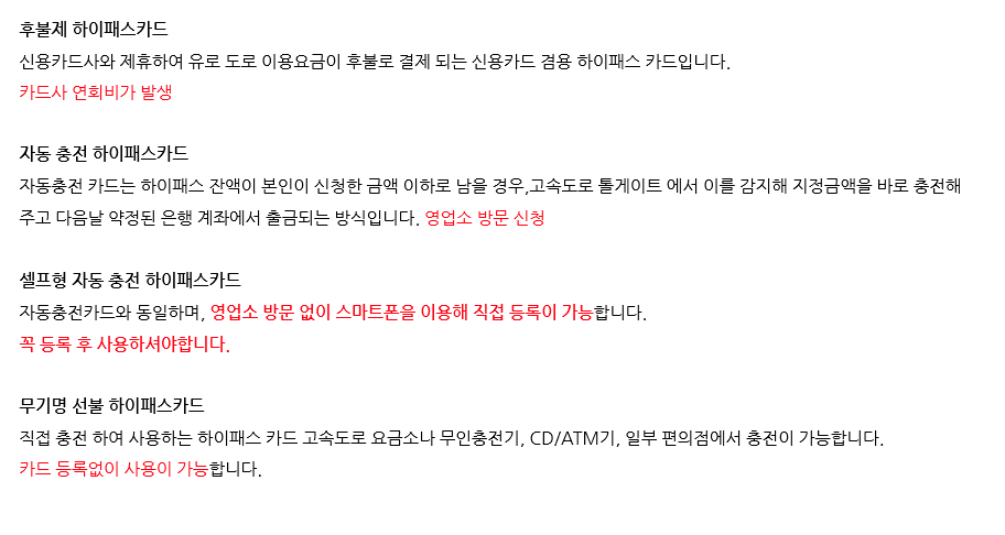 - 후불 하이패스 카드: 신용카드 결제 기능 포함