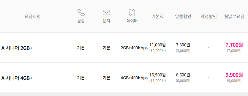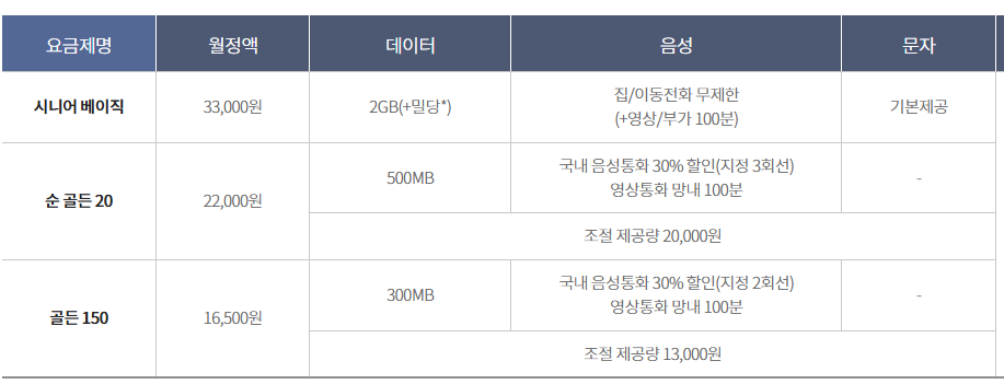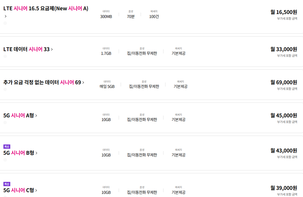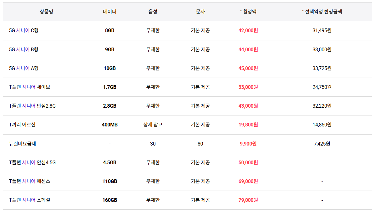 - 시니어 전용 요금제 꼭 확인: 홈페이지에 명시되지 않은 요금제도 있음